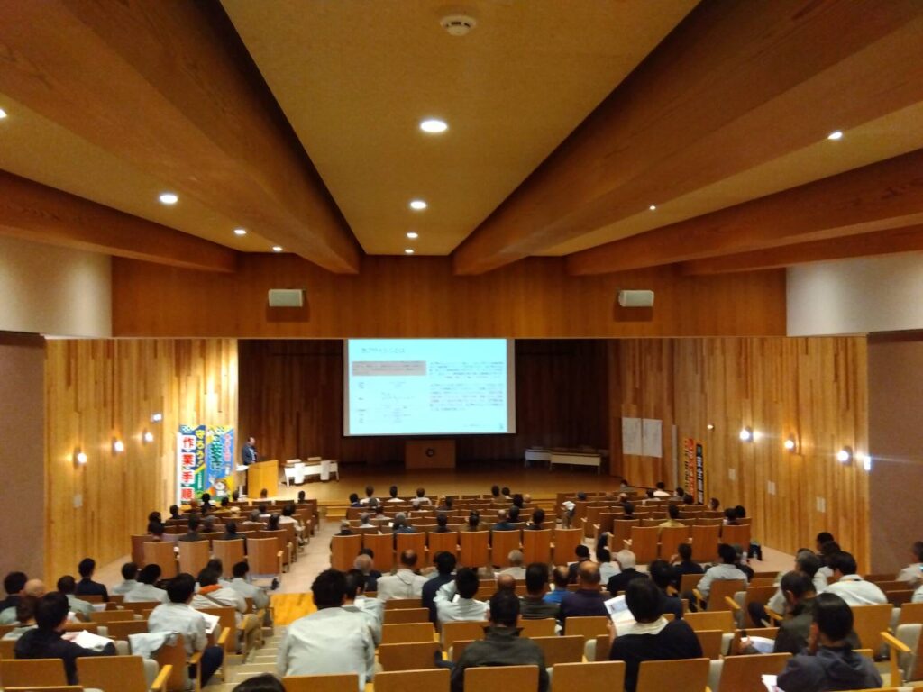 今月は、当組合の労働安全月間です。今日は役職員及び技術作業班約140名が集まり午前10時より多賀町中央公民館・多賀結の森において「労働安全誓いの集い第2回労働安全衛生大会」を行ないました。