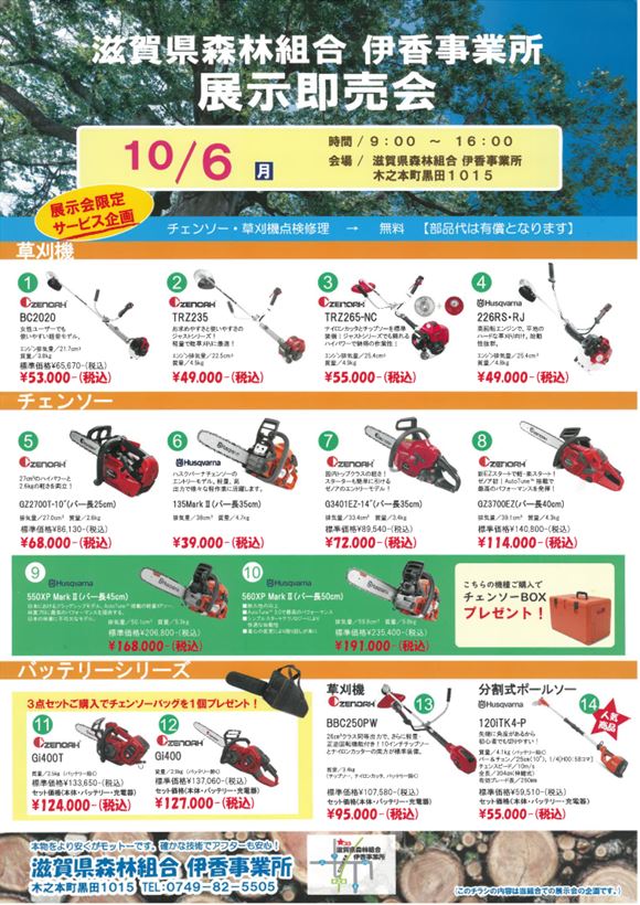 伊香事業所(長浜市木之本町黒田1015)で毎年恒例の展示即売会を開催いたします。
